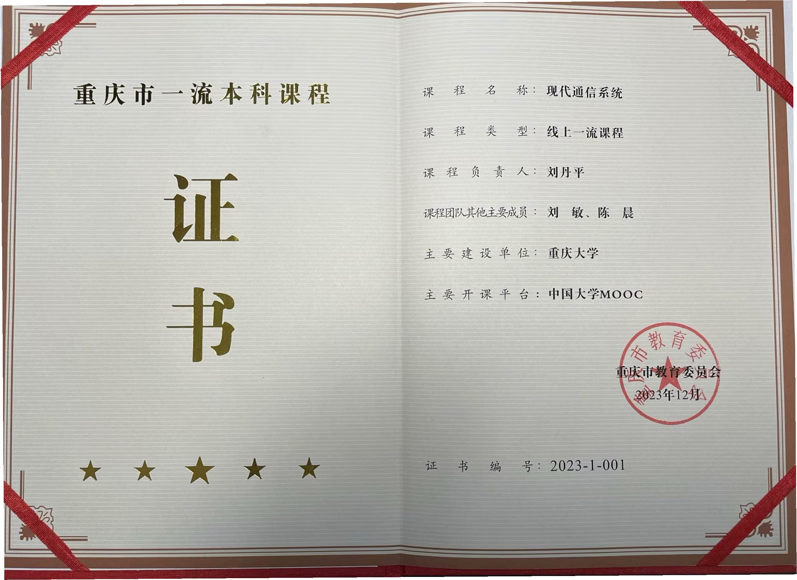 重庆市一流课程证书