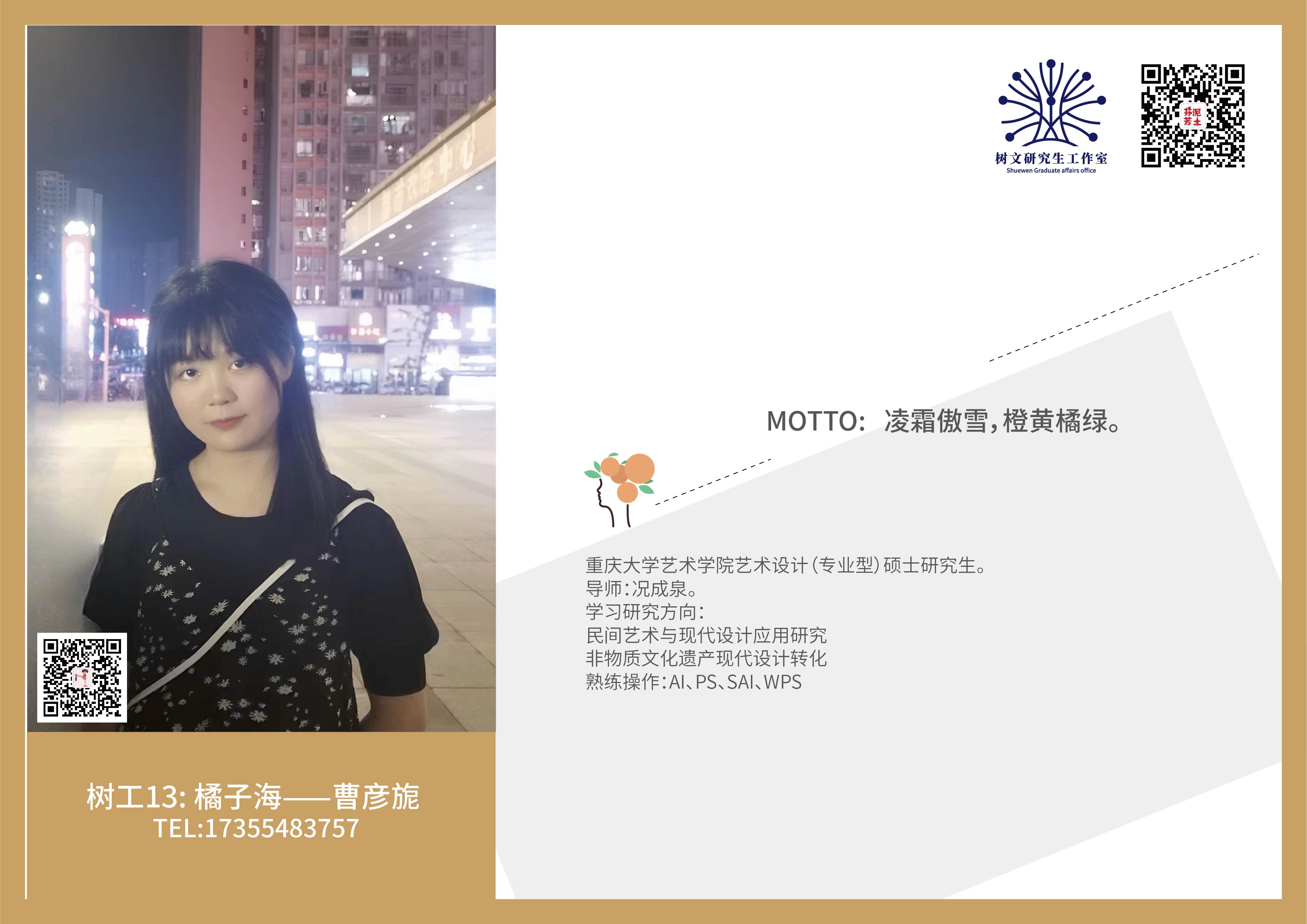 树文研究生工作室学生风采-2022级-曹彦旎