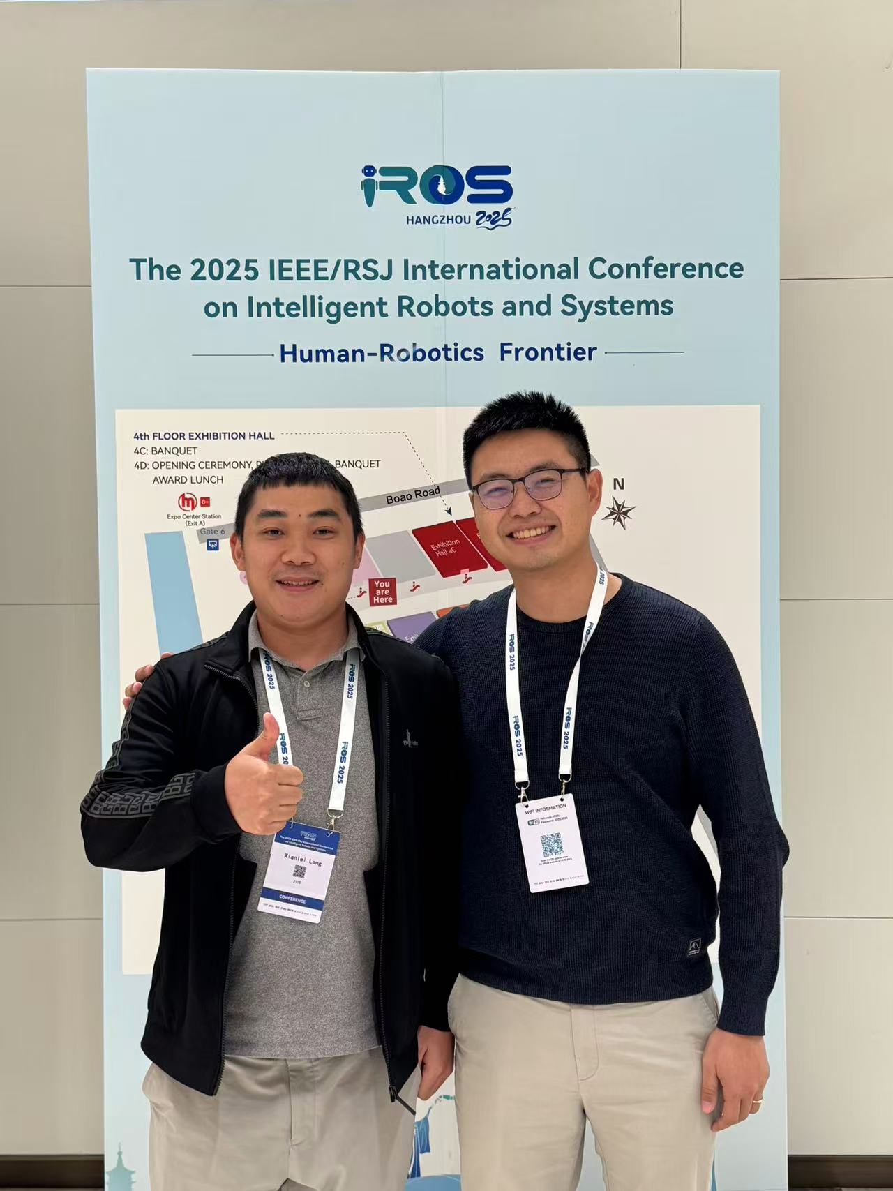 IROS 2025,杭州,与我的老朋友,张修,现在在比萨圣安娜大学任教,见面畅谈